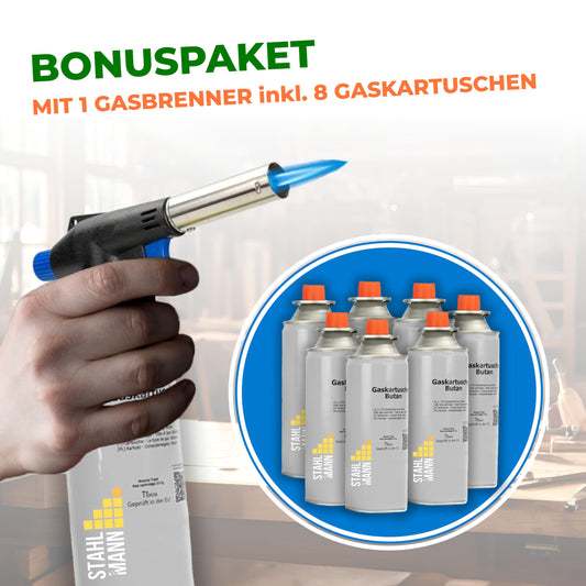 STAHLMANN® Gasbrenner mit Kartusche (8x227g): Flambierbrenner max. 1300°C Temperatur