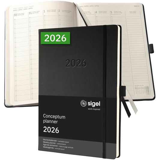 Planungsbuch 2026 Extra-Groß: A4+, Hardcover, 192 Seiten, Stiftschlaufe, Archivtasche