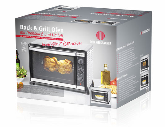 ROMMELSBACHER Back & Grill Ofen (BG 1805/E) mit Doppelverglasung, Innenbeleuchtung, Zeitschaltuhr, 1800W