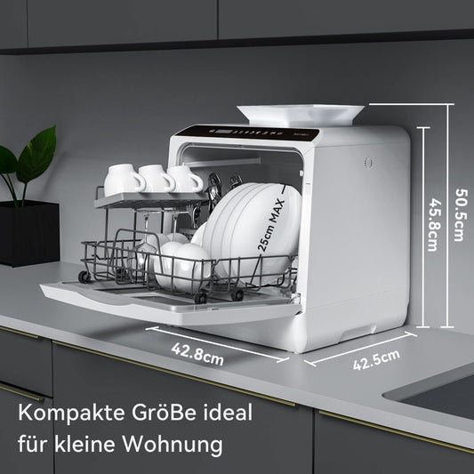 Hermitlux Mini-Geschirrspüler für 4 Bestecksätze, 5 Liter Wassertank, 6 Programme