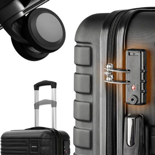 • TRAVELY Polycarbonat Koffer-Set (3-teilig) mit sanften Rollen & TSA Schloss | Schwarz