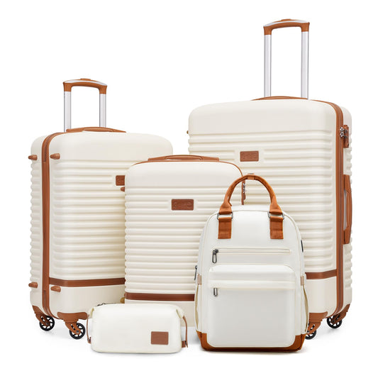 COOLIFE hard-shell travel suitcase set (5 pieces): ABS, 4 wheels, TSA lock | White-brown