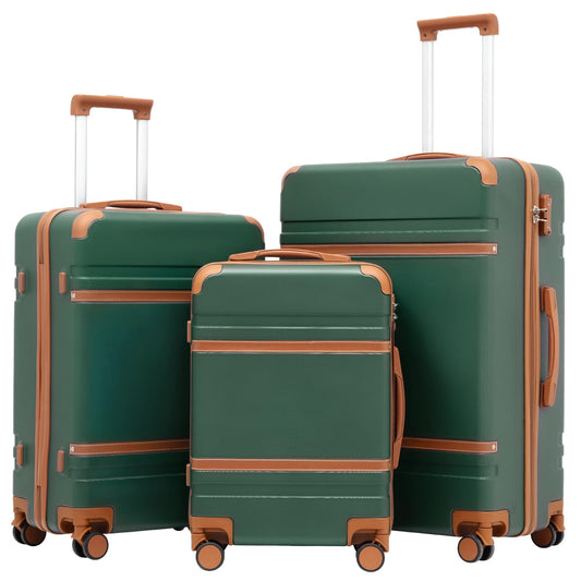 COOLIFE hard-shell travel suitcase set (3 pieces) with TSA lock & telescopic handle (dark green)