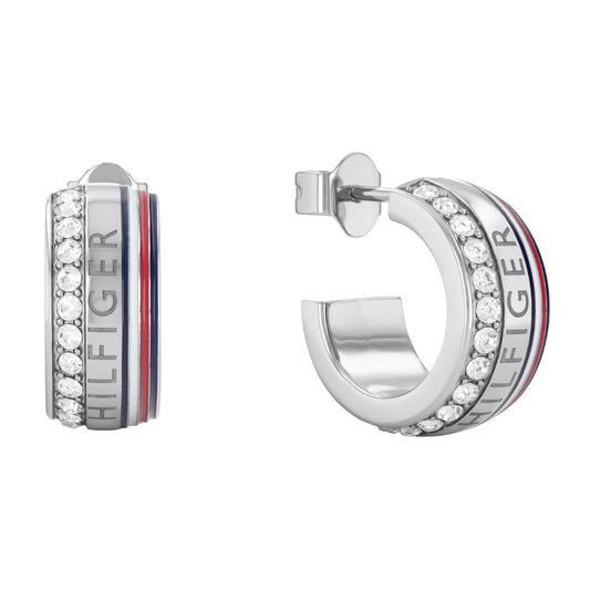 Swarovski Matrix Kreolen Damen-Ohrringe mit blauen Swarovski Kristallen
