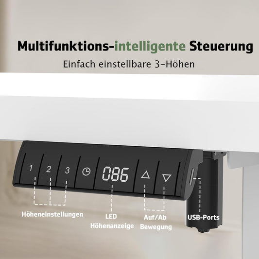Flamaker Schreibtisch (160x80cm): Elektrisch Höhenverstellbar mit Memory Funktion in Weiß