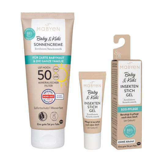 Mabyen Baby & Kids Sommerschutz-Set (2-teilig): Sonnencreme LSF 50 + Insektenstichgel | Ab Geburt, Vegan