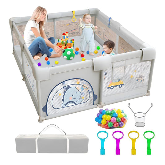 Laufgitter Baby mit rutschfestem Boden (200x180cm) inkl. 60 Seebälle, 4 Griffe, Playpen, Aufbewahrungstasche