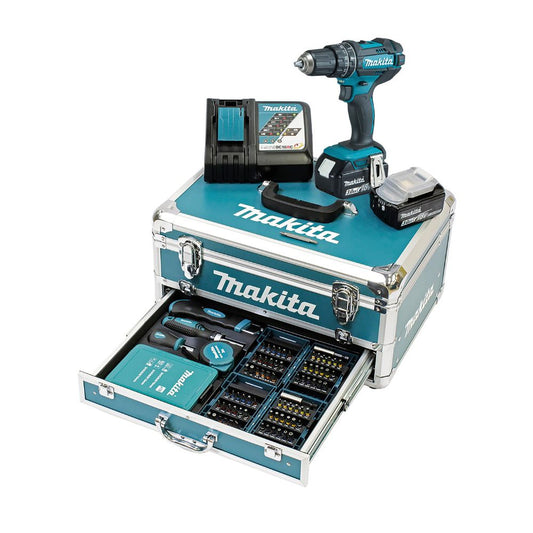 Makita Schlagbohrschrauber (96-teilig): 18V/3,0Ah, 2 Akkus + Ladegerät im Alukoffer
