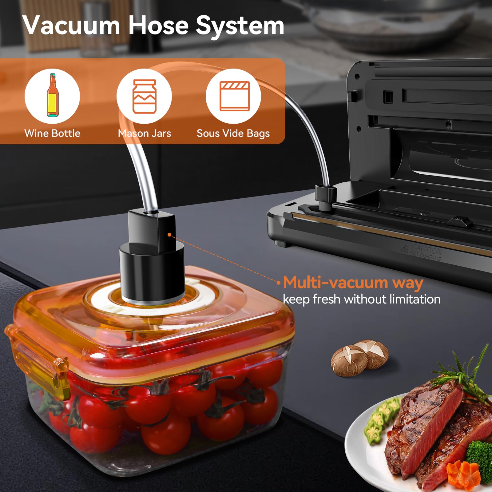 8-in-1 Vakuumiergerät 80 KPA | Lebensmittel Trocken-/Feuchtmodus mit eingebautem Cutter, digitalem Countdown