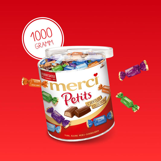 merci Petits Chocolate Collection (1kg): Mix aus Schokoladen-Spezialitäten in praktischer Runddose