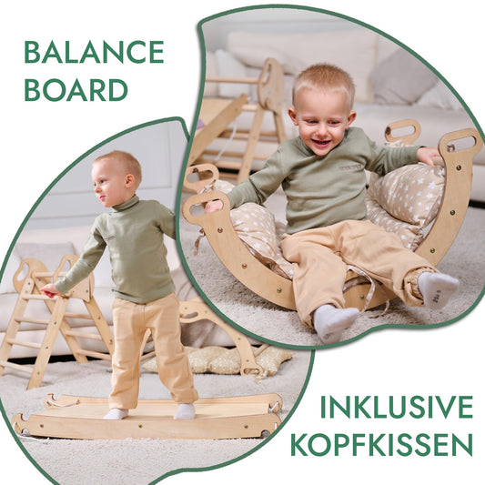5-in-1 Montessori Klettergerüst-Set mit Kissen & Rutsche für Kinder, Indoor Spielplatz