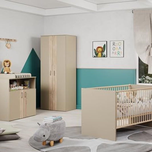 Babyzimmer-Set 'BERRY' mit 3-fach Lattenrost, Wickelkommode & Kleiderschrank