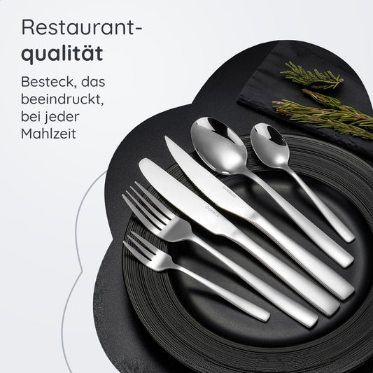 Deleca Edelstahl Besteckset für 12-Personen (72-teilig): Spülmaschinenfest, Silber-Tafelbesteck für Haus