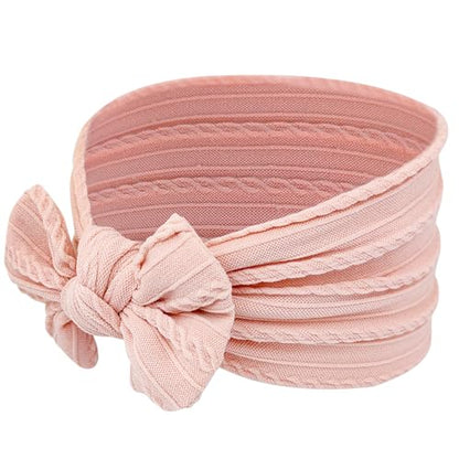 Baby Mädchen Turban Elastische Stirnband-Schleife (2er-Set in Rosa und Weiß)