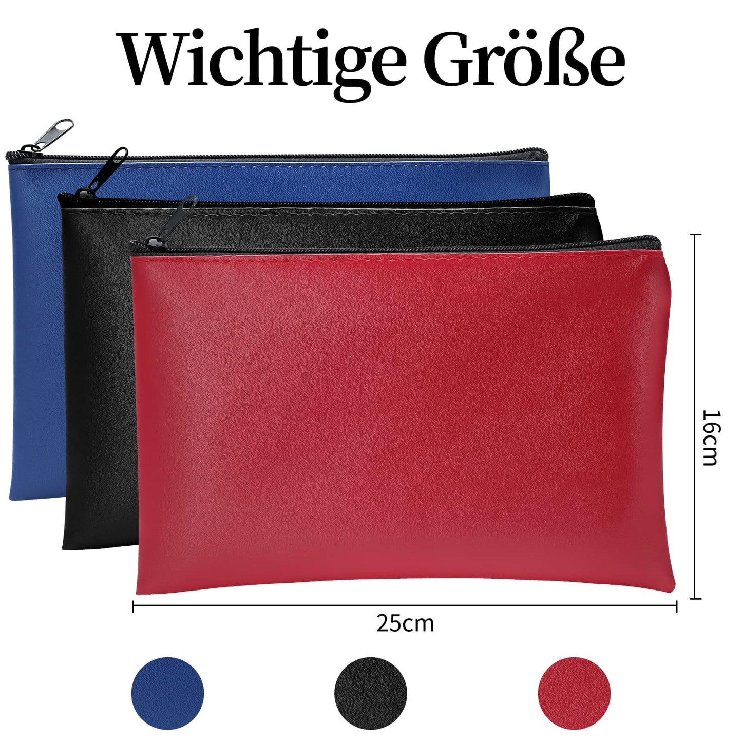 3 Stück Banktaschen aus Kunstleder (25x16cm): Geldtasche für A5 Dokumente, Geldmappe