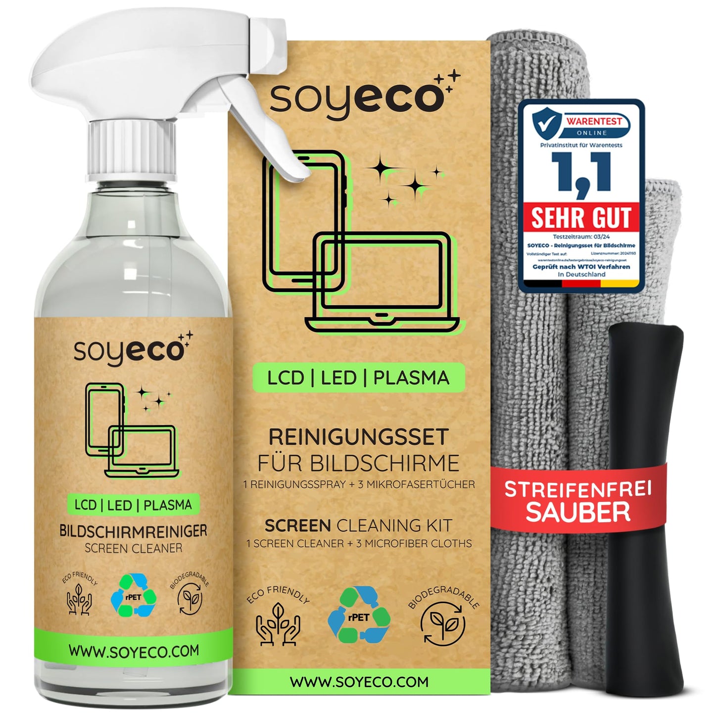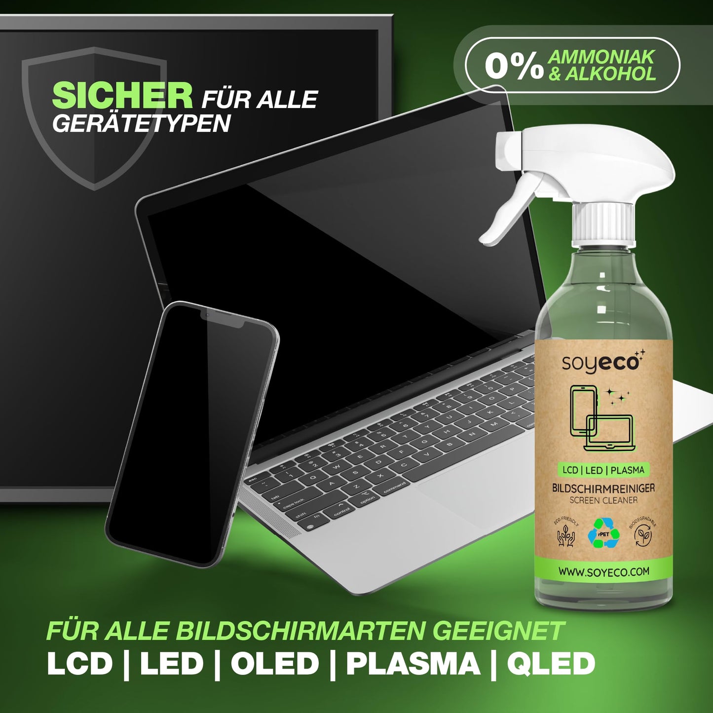 - Sicher & schonend: Frei von Alkohol, Ammoniak und Phosphaten - schützt die Bildschirmbeschichtung