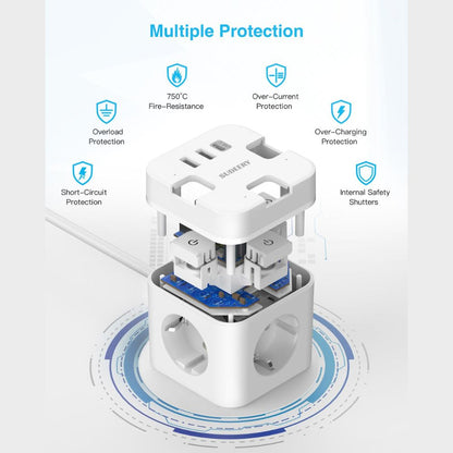 6-in-1 Steckdosenwürfel (2m Kabel) mit USB-C: Einzeln Schaltbar für Büro, Haus, Reisen