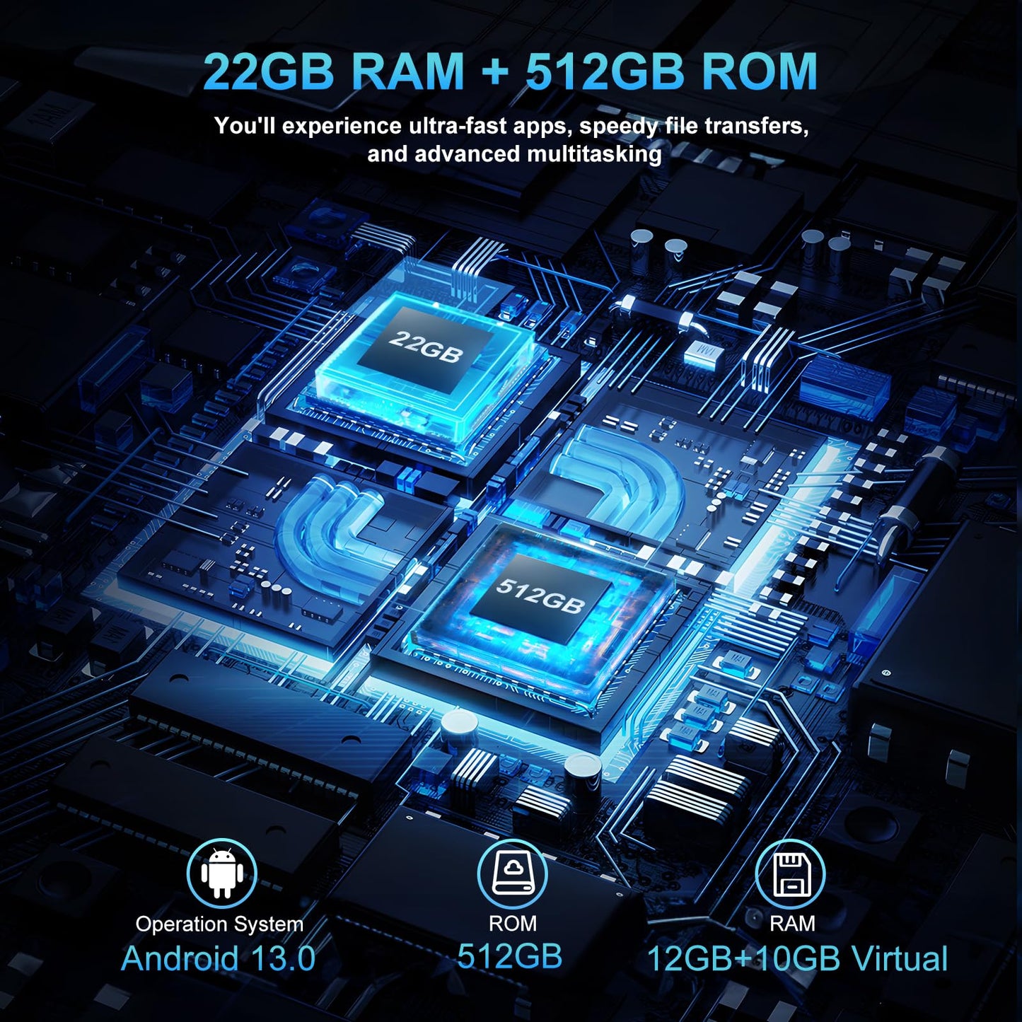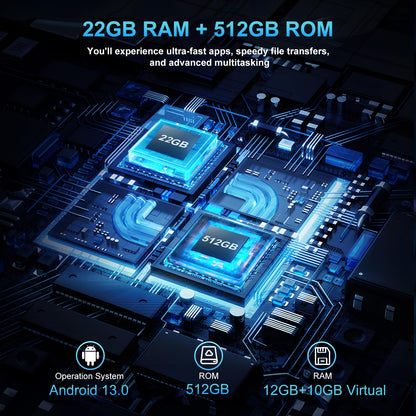 - Leistungsstarke Ausstattung: 24 GB RAM (12+12 GB RAM-Boost), 512 GB ROM, Helio G99 Prozessor und Android 13 für flüssige Performance.