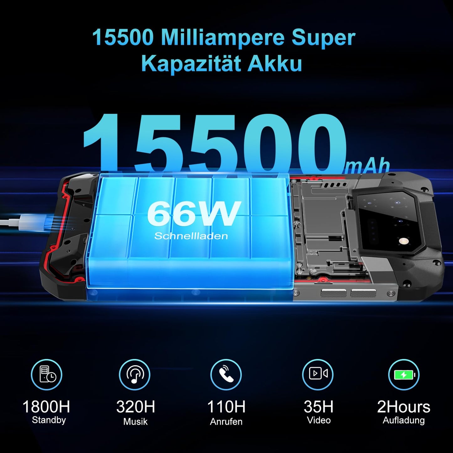 Tank 2 Outdoor Dual SIM Smartphone mit Projektor & Nachtsicht (24GB RAM+512GB Speicher, 15500mAh)