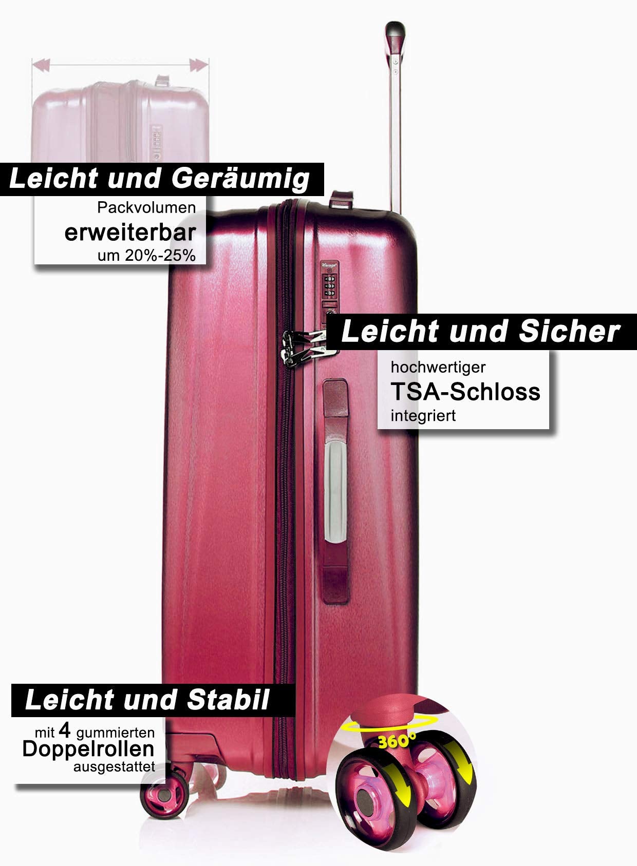 Größen für jede Reise: Handgepäck (55cm), mittel (66cm), groß (76cm) - flexibel einsetzbar mit bis zu 127 L Volumen