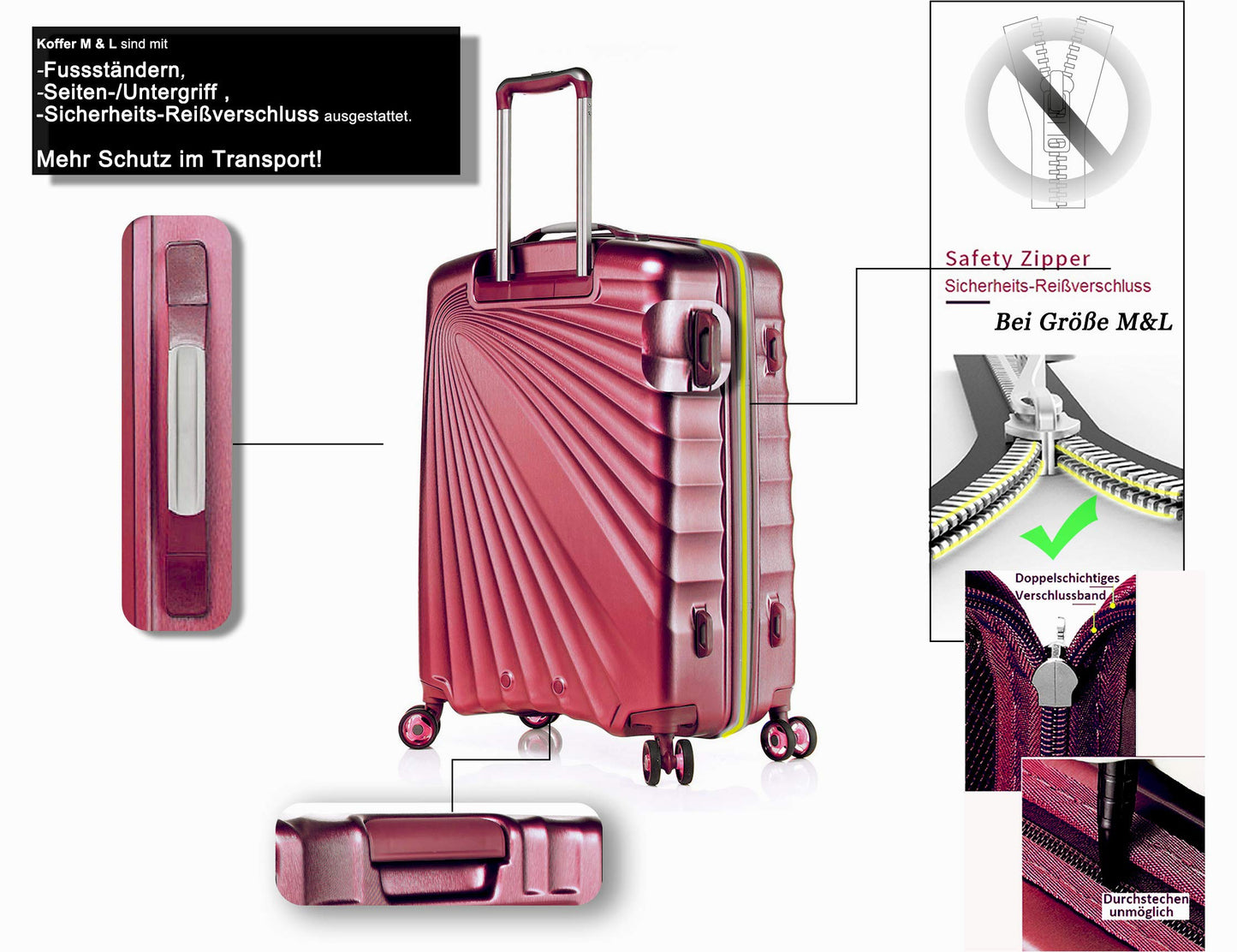 Farbe: Metallic Burgund | Modell: Kinetic | Set: 3-teilig