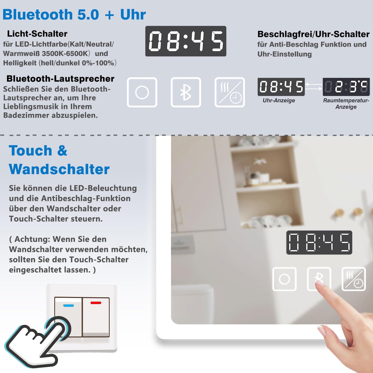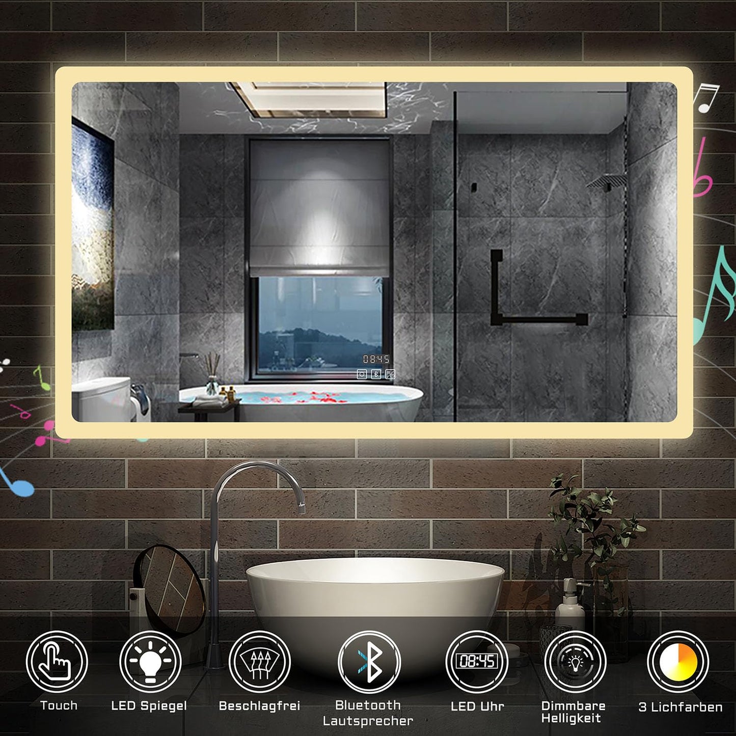 LED Badspeigel (160×80cm) mit Bluetooth & Memory-Touchschalter: Dimmbar, Anti-Beschlag