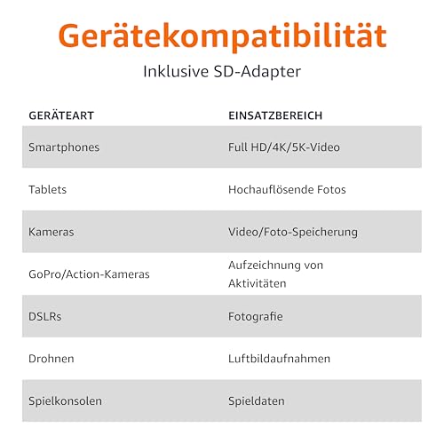Hinweis: Kompatibilität mit Endgerät prüfen. Tatsächliche nutzbare Kapazität: über 465 GB. Maximale Lesegeschwindigkeit erfordert separaten Amazon Basics USB-C 3.0 Kartenleser.