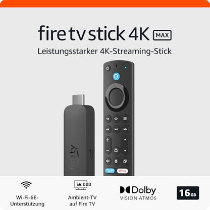 Erlebe blitzschnelles Streaming mit dem Amazon Fire TV Stick 4K Max. Unterstützt 4K Ultra HD, Dolby Vision, HDR10+ und Dolby Atmos für lebensechtes Bild und Klang.