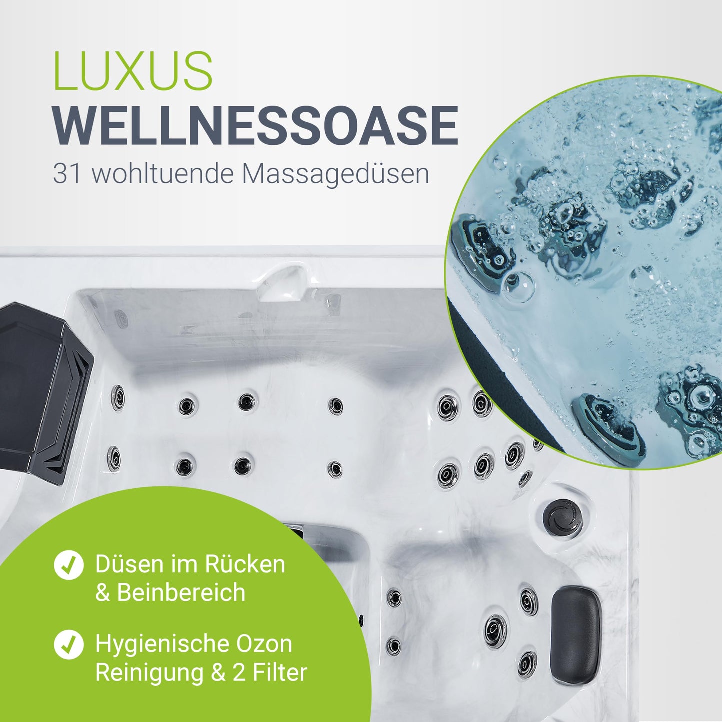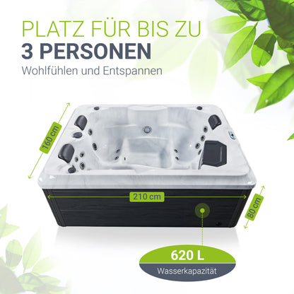 Artsauna Whirlpool 'OASIS' für 3 Personen (620L) inkl. Thermoabdeckung: 31 Massagedüsen (Grau)
