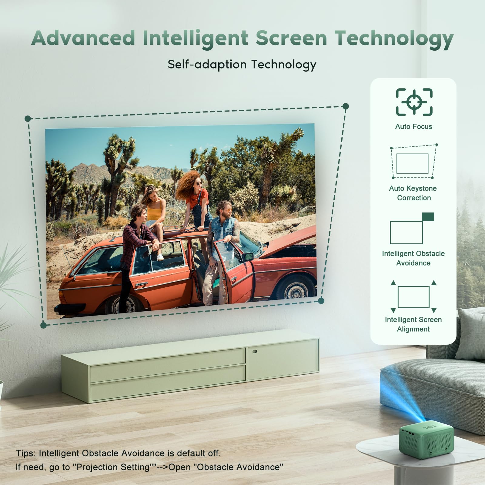 - Einfache Einrichtung & vielseitige Anschlüsse: HDMI, USB, TF und 3,5 mm Klinke für vielseitige Verbindungen. Automatische Bildschirmanpassung und Hindernisvermeidung für maximalen Komfort.