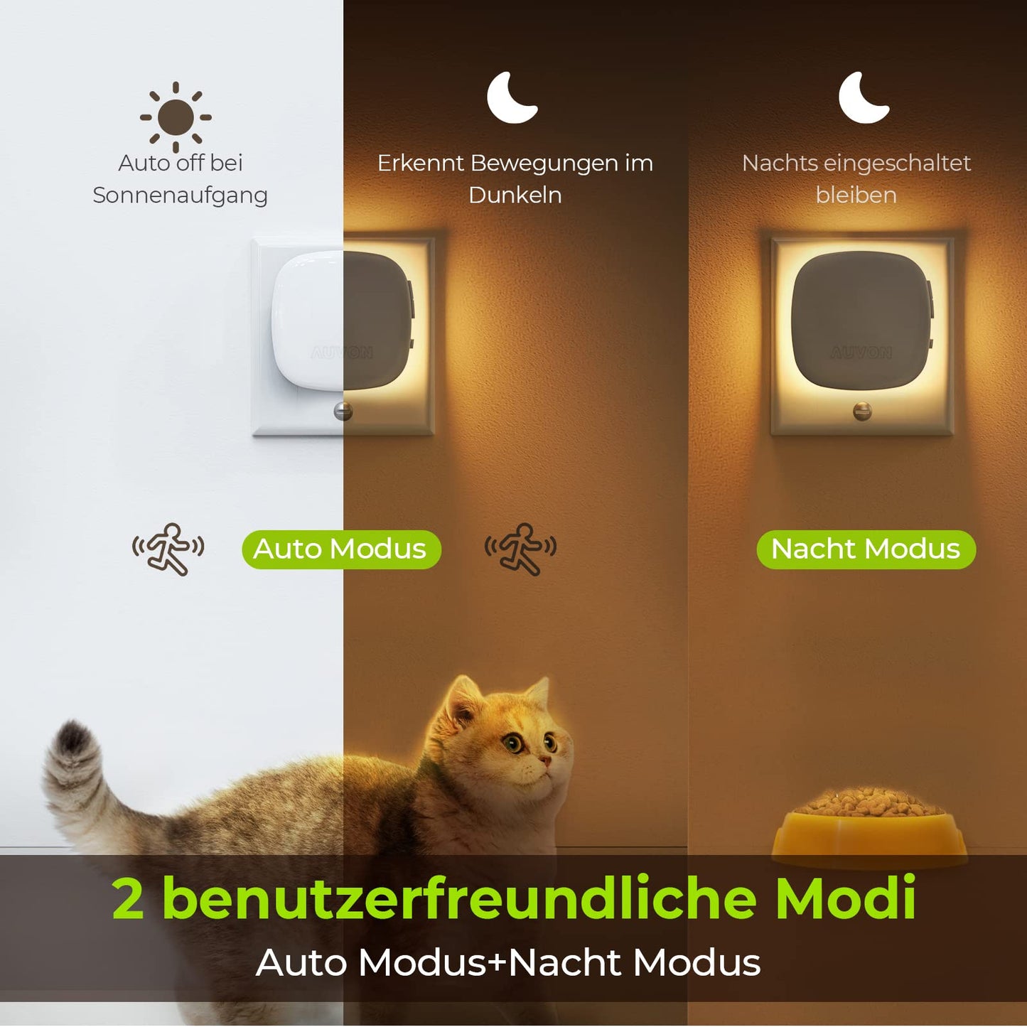 AUVON LED Nachtlicht 2er Set (Warmes Weiß): Bewegungssensor & Dämmerungssensor