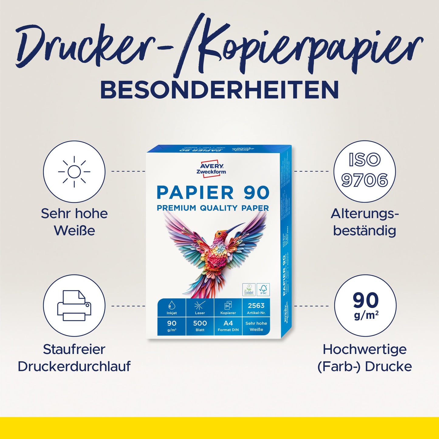AVERY Zweckform (2563) Drucker-/Kopierpapier | 500 Blatt, DIN A4 für alle Drucker
