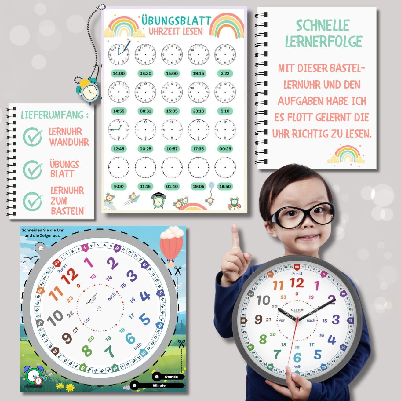 - Inkl. Lernzubehör - Bastelbare Lernuhr & Übungsblatt im Set enthalten
