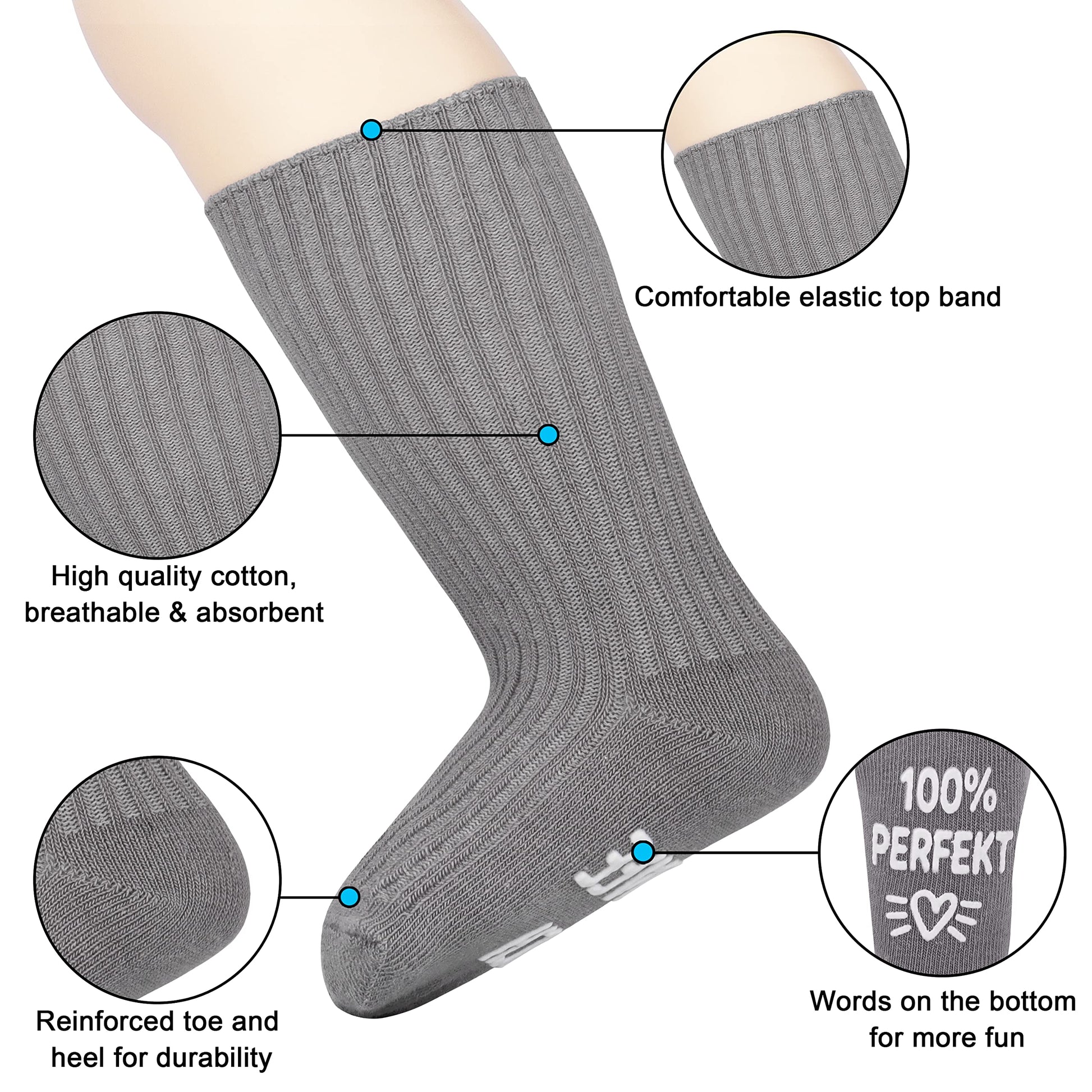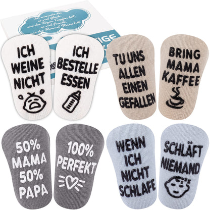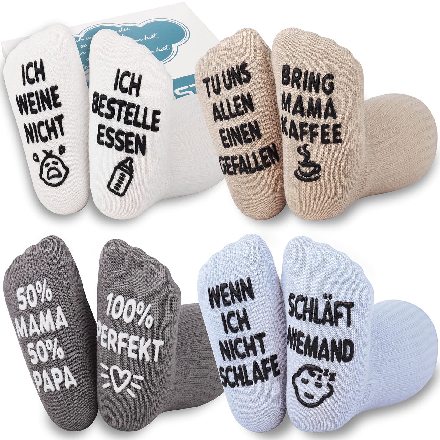 Belloxis Baby Socken (4 Paar): Lustige Textaufdrucke & Rutschfest | Für Babys von 0-12 Monaten
