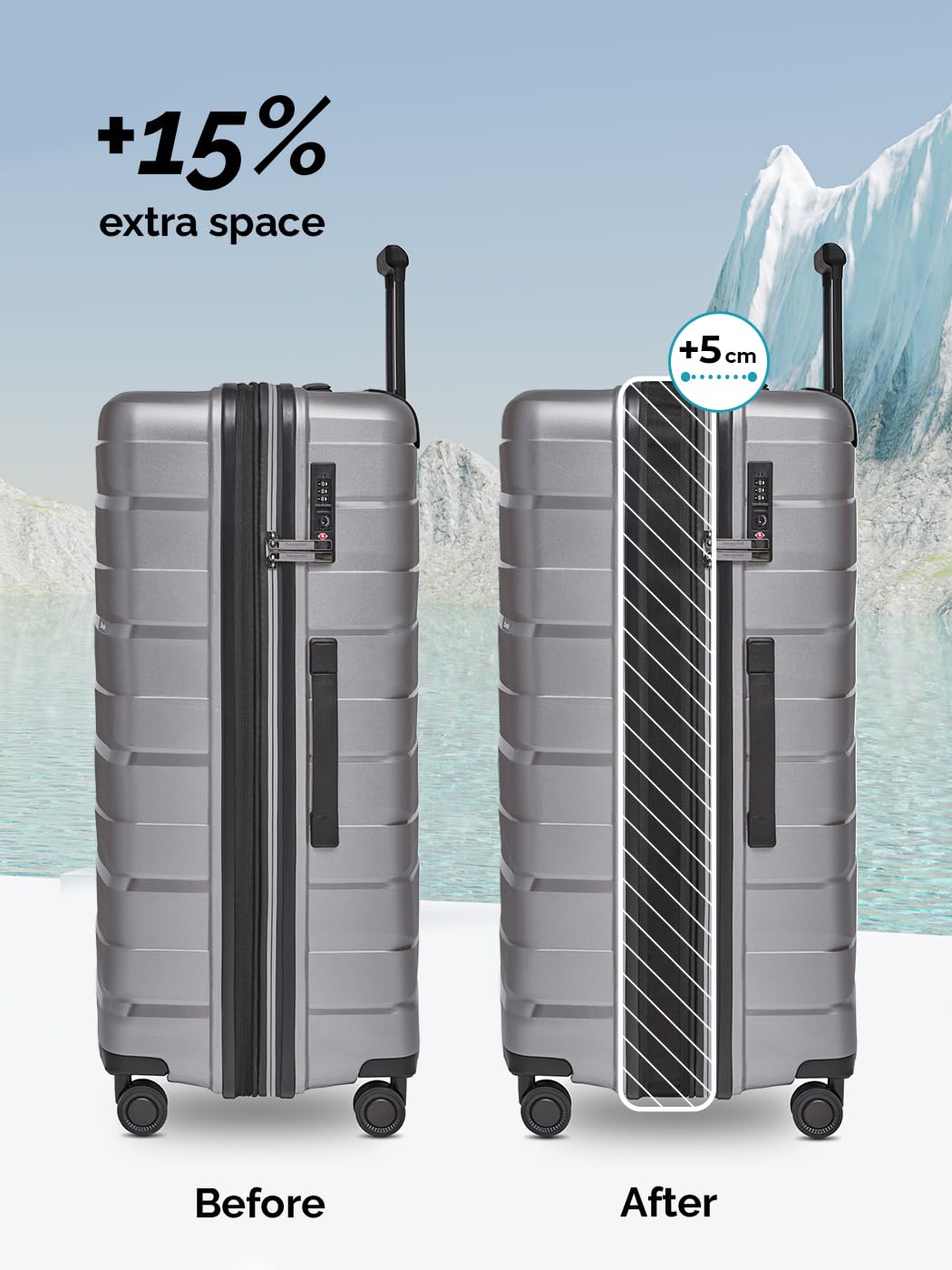 Mit Dehnfalte je +5cm für noch mehr Platz - Maximaler Schutz: Hochwertige Polypropylen-Hartschale, wasserabweisende Reißverschlüsse