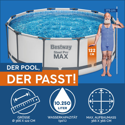 Bestway Steel Pro-MAX Frame Pool Komplett-Set mit Filterpumpe (Ø 366x122cm)