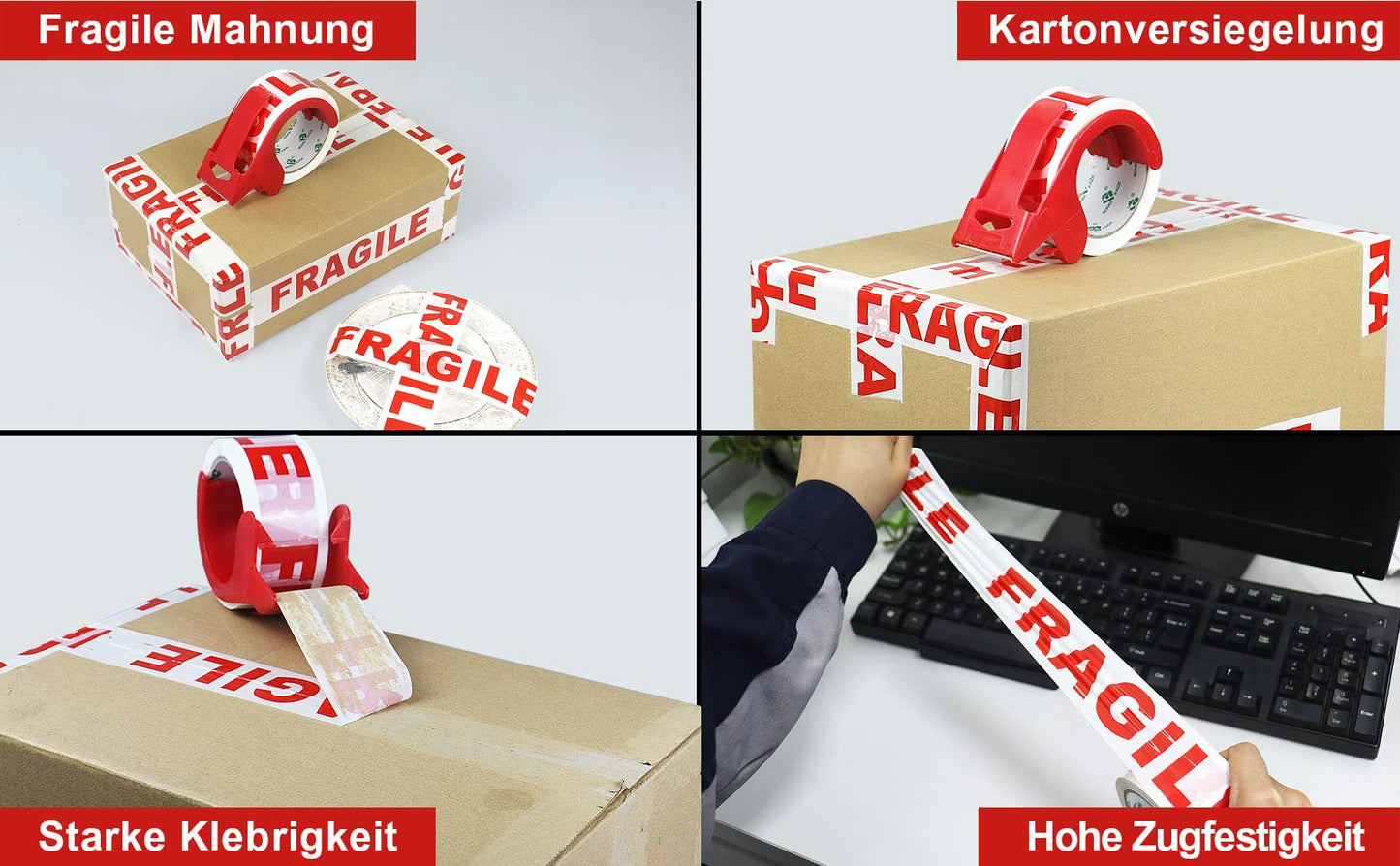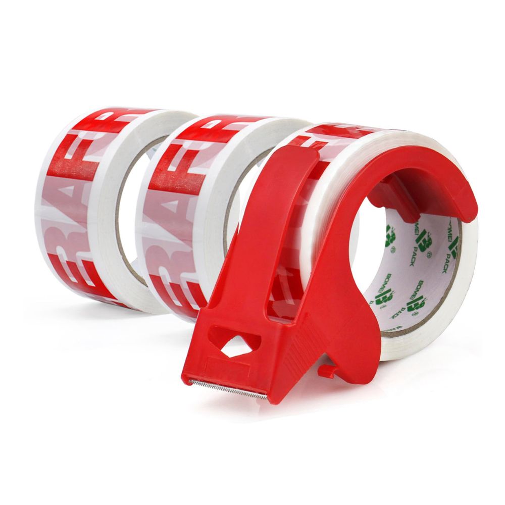 BOMEI PACK Paketklebeband zum Verpacken von Paketen (3 Rollen - Red Fragile)