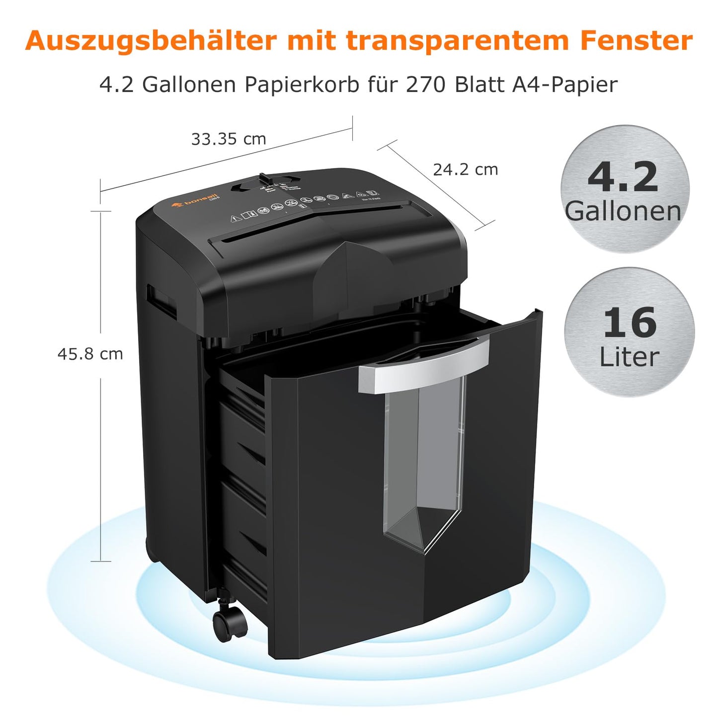 - [ Einfach anzuwenden] Aktenvernichter hat 4 abnehmbare Räder für einfache Mobilität und flexible Platzierung. 16-Liter-Auszugsbehälter mit transparentem Fenster ist leicht zu entleeren und erfüllt Ihre täglichen Anforderungen