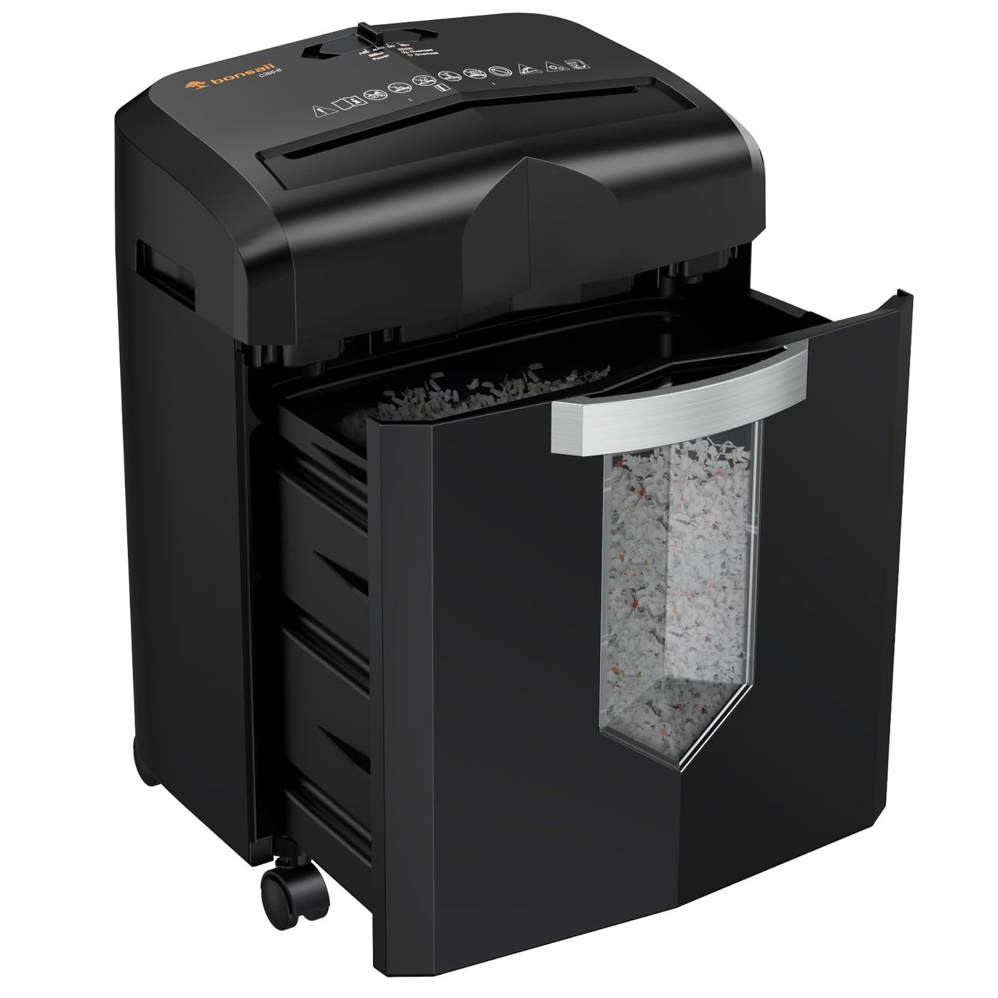 Bonsaii 12-Blatt Partikelschnitt Aktenvernichter, läuft 60 Minuten lang, Hochleistungs schredder aktenvernichter für Home Office, P4 Mikroschnitt papierschredder mit 4 Rollen & 16L Behälter(C266-B)