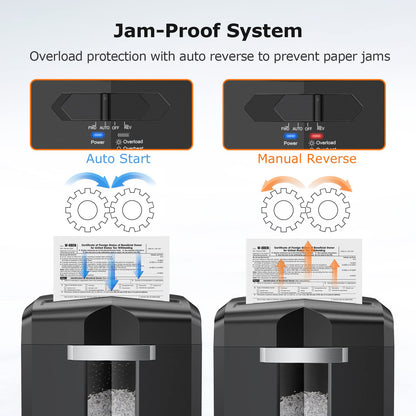 - [ Auto Start & Reverse ] Auto Start/Stopp und manueller Zurücklauffunktion schützen Sie vor der Frustration von Papierstaus; Mit Überhitzungsschutz und automatischer Stoppfunktion bei zu viel Papier