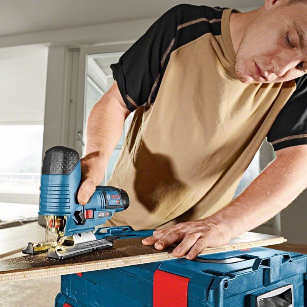 Dank der schlanken Stabform liegt die Stichsäge perfekt in der Hand. Sie bietet maximale Wendigkeit - auch bei Arbeiten über Kopf oder bei Schnitten von unten.