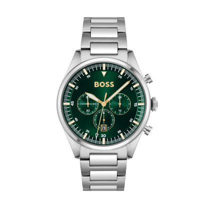 BOSS Chronograph Quarz Uhr (1513868) für Herren aus Kollektion 'Pioneer' mit silbernes Edelstahlarmband