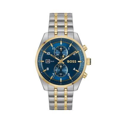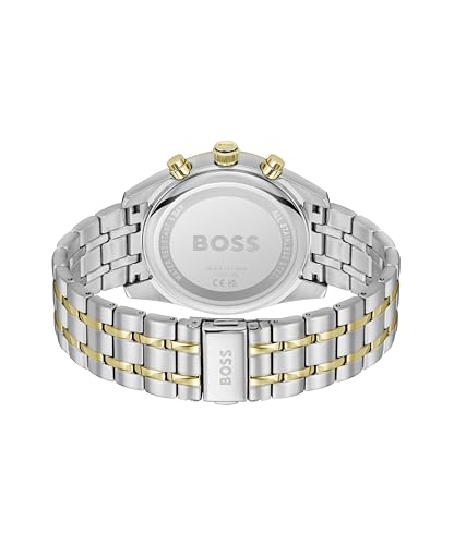 BOSS Chronograph Quarz Uhr für Herren (1514247) aus Kollektion 'SKYTRAVELLER' mit zweifarbiges Edelstahlarmband