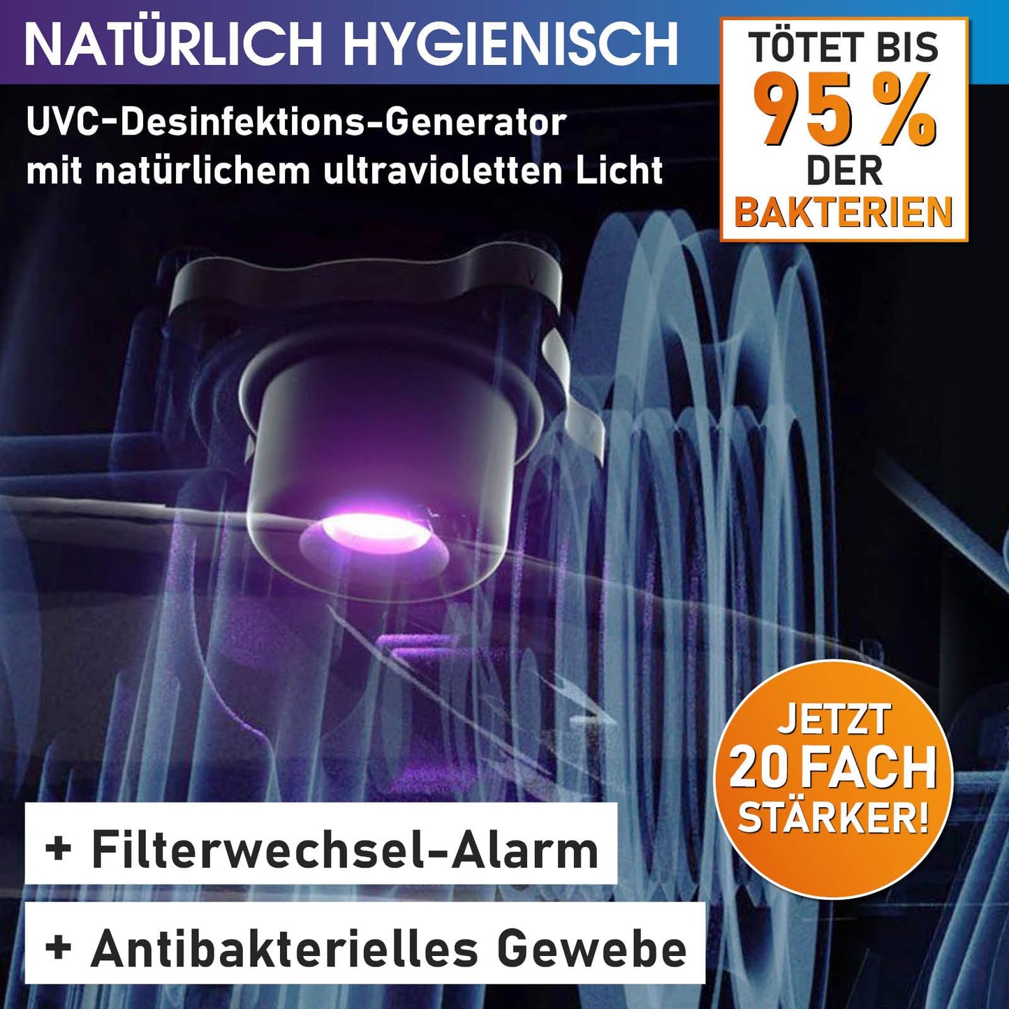 • Hygiene: UVC-PLUS-Desinfektion, antibakterielles Innengewebe