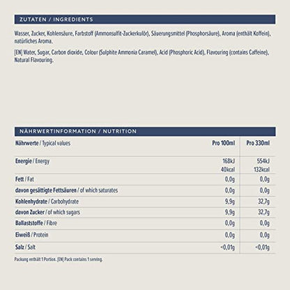 Entdecke den klassischen Cola-Geschmack in der praktischen 330ml Dose - perfekt für unterwegs oder als Vorratspack für zu Hause. Koffeinhaltig, vegan und eiskalt ein echter Genuss. Die ideale Erfrischung für deinen Alltag!