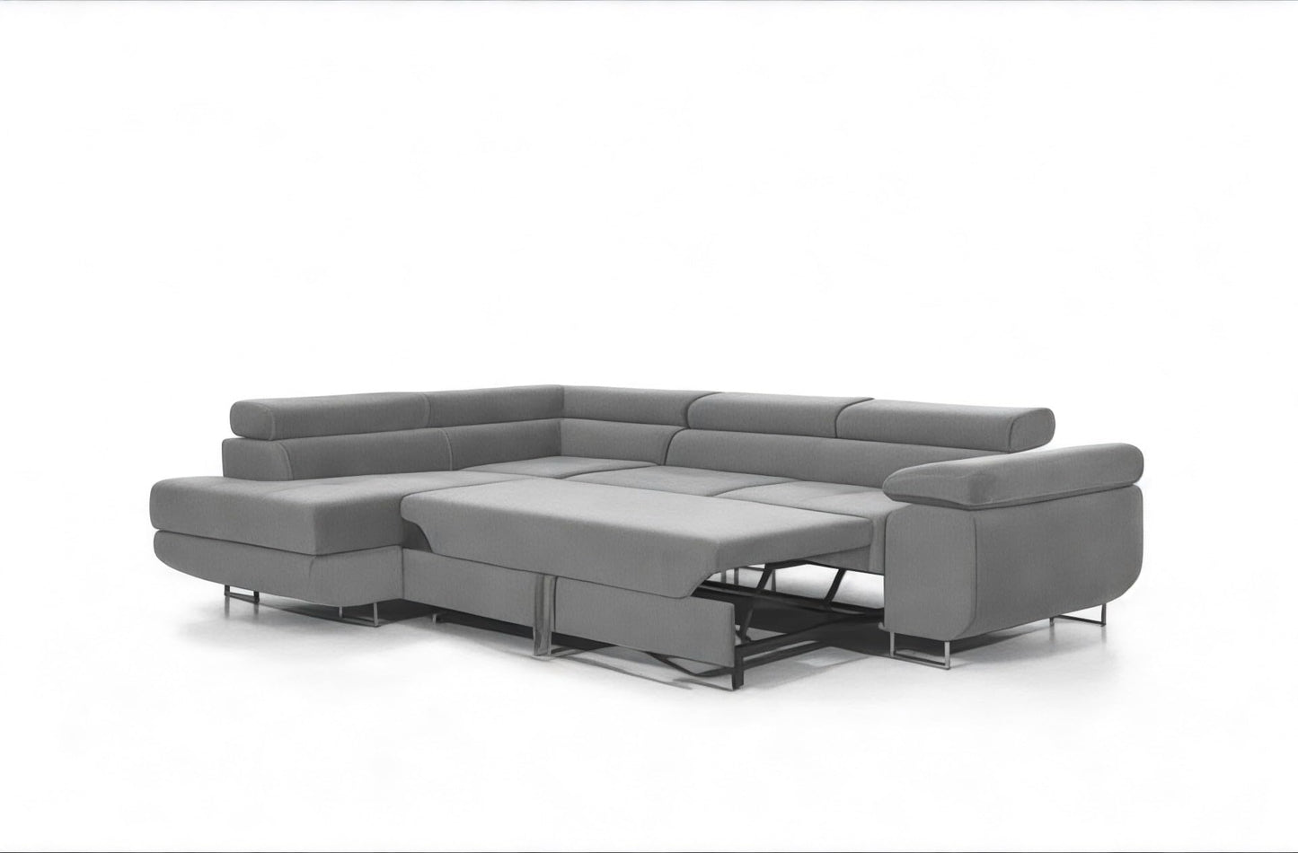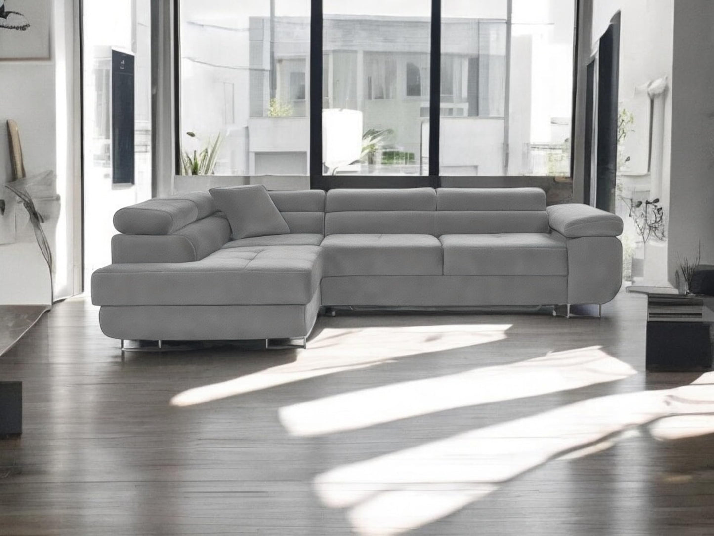 3-Sitzer L-Form Ecksofa mit Schlaffunktion 'PASTI' Eckcouch für Wohnzimmer (Hellgrau, Ottomane Links)