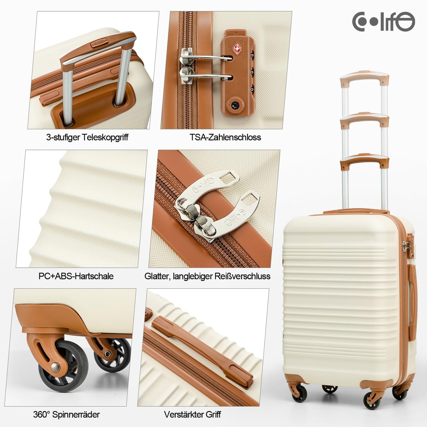 COOLIFE Hartschalen Reisekoffer-Set (6-teilig):ABS, 4 Rollen, TSA-Schloss | Blaubraun