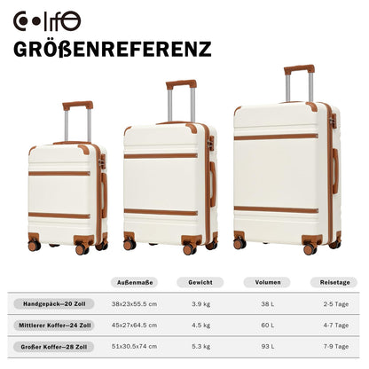 COOLIFE Hartschalen Reisekoffer-Set (3-teilig) mit TSA-Schloss & Teleskopgriff (Dunkelgrün)