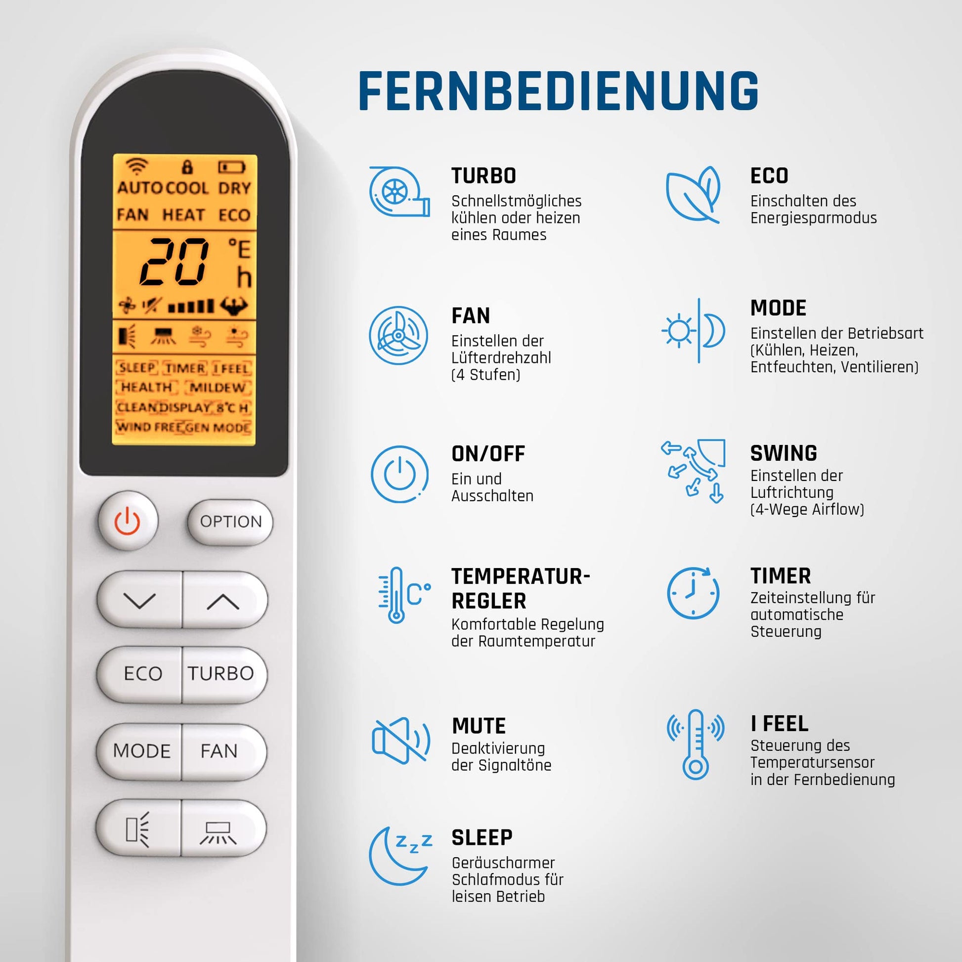 5-in-1 Funktion: Kühlen, Heizen, Entfeuchten, Ventilator, Luftreinigung