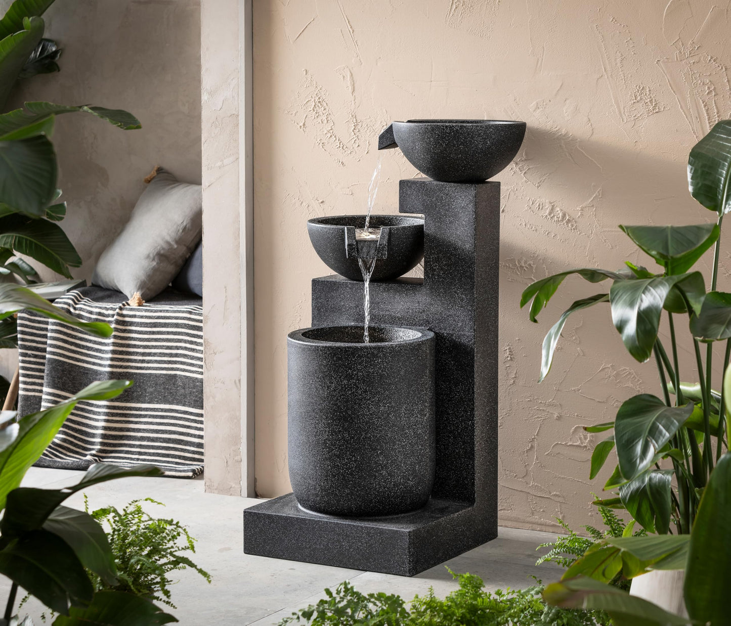 - Sanftes Plätschern für Entspannung und Ruhe im Garten